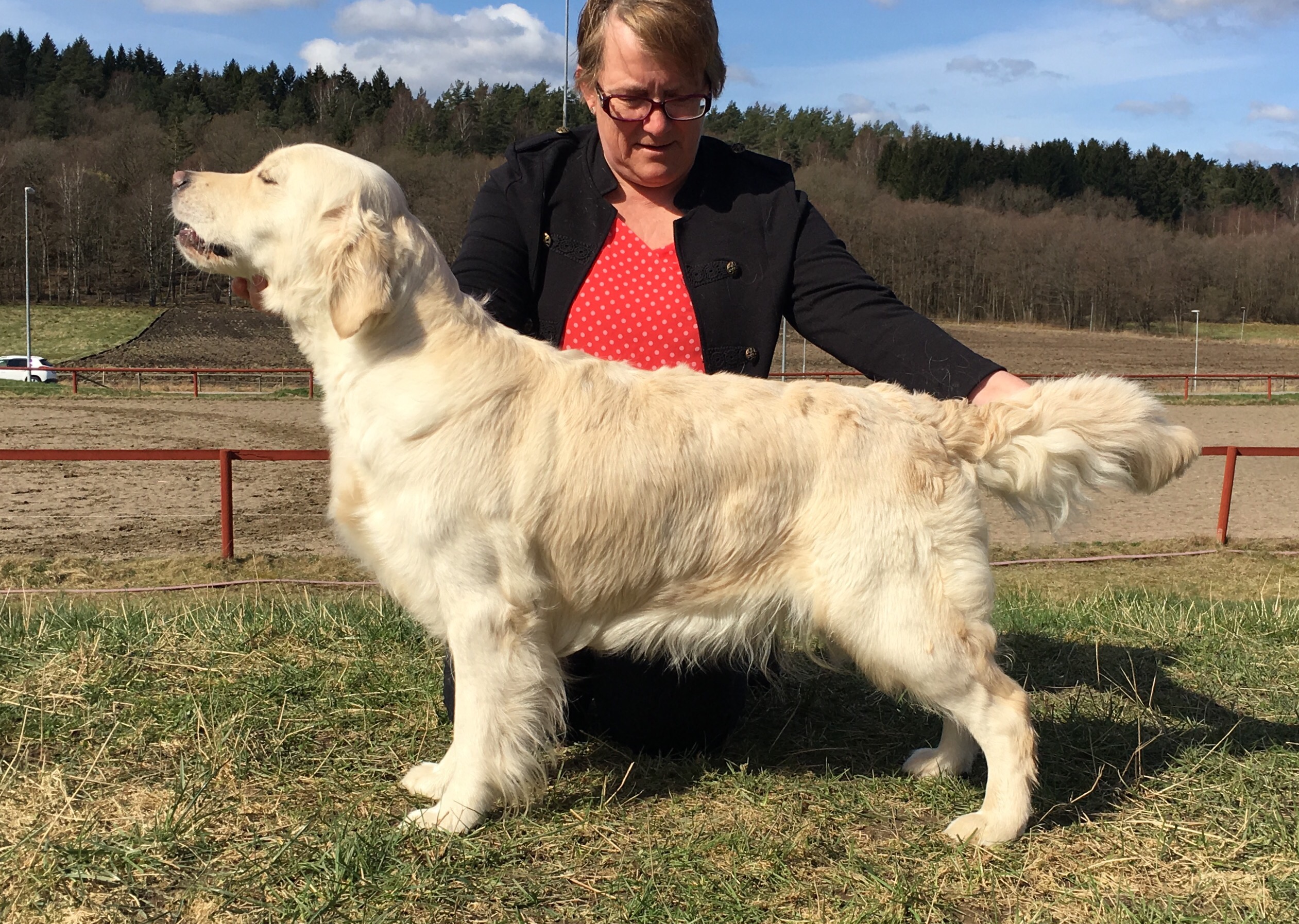 I utställningsringen. Elvis, L Boyzone, debuterade i juniorklass och vann den med Excellent och ck!
