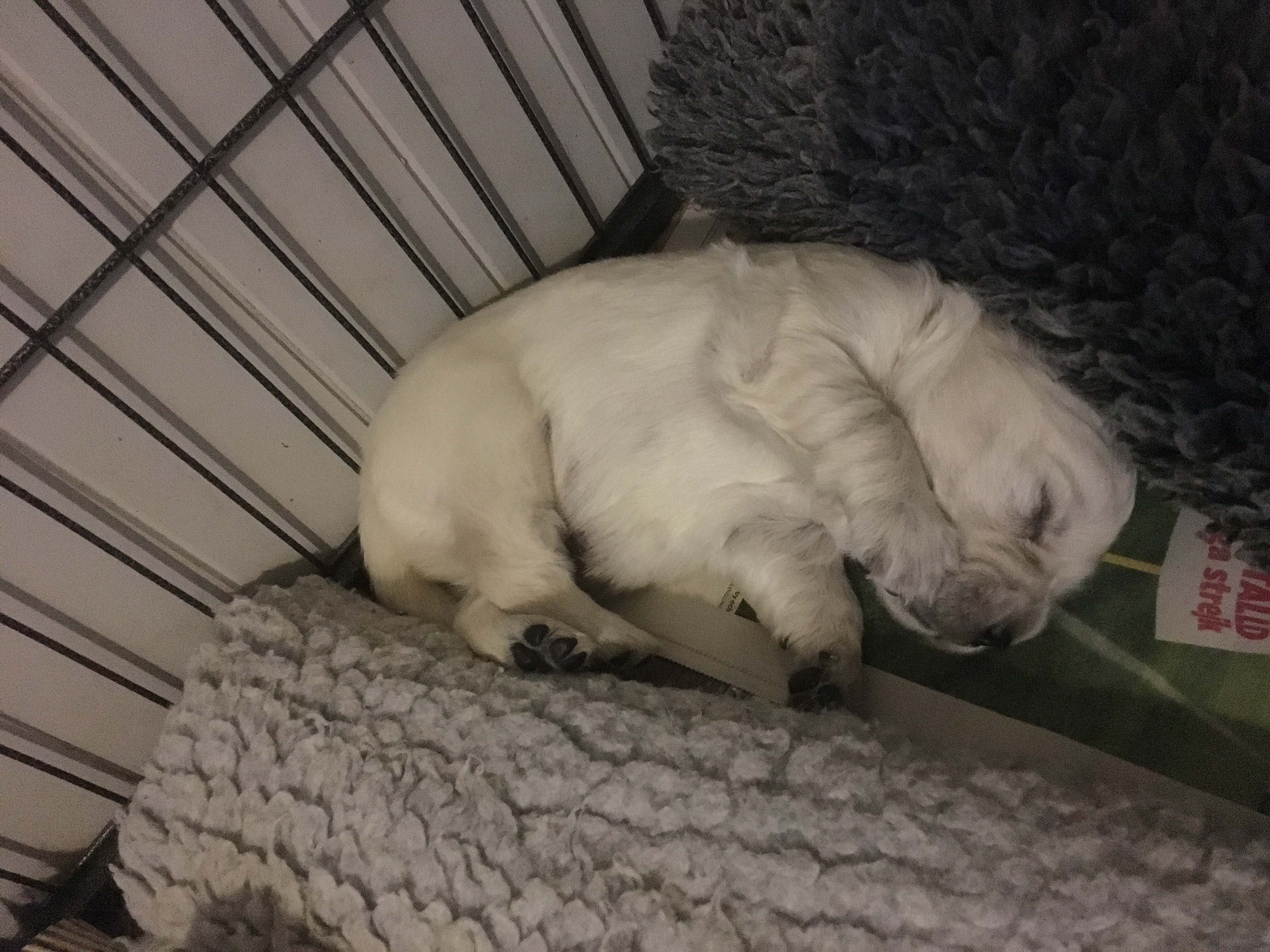 Rapport från valplådan Jan26 Nu har vi öppnat våra ögon och öron, kommit upp på benen och smakat nötfärs utrörd i äggula för första gången. Det var mums! Finns fortfarande en pojke kvar att tinga! Välkomna att höra av er. Mer info på sidan valpar img_6487